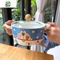 可爱陶瓷汤碗大容量泡面碗带盖卡通男女学生创意方便面碗家用大号 FENGHOU C款叮当泡面碗双面单碗竖条纹款