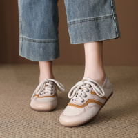 头层牛皮单鞋女2026春季新款圆头系带平底舒适不累脚运动休闲鞋