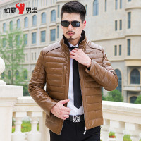 勎霸 男士羽绒服冬款加厚保暖羽绒棉袄中青年皮羽绒服可拆卸獭兔毛领仿真皮衣轻薄冬装外套男装