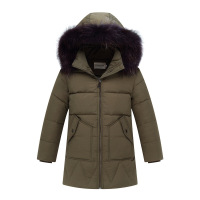 羽绒服男2017冬季新款学生儿童羽绒服大毛领男童中长款加厚童装中大童休闲外套 军绿色 120cm