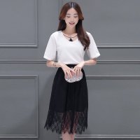 声缎2016夏季新款女装 韩版修身收腰蕾丝裙子两件套装裙8136