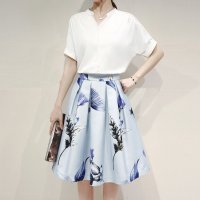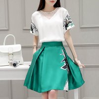 声缎2018夏季新款女装 两件套女装韩版上衣时尚印花A字套装裙子9016