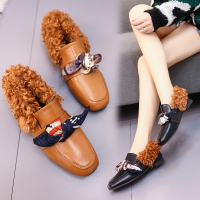鞋子女2017新款韩版百搭女鞋平底豆豆鞋女冬复古方头小皮鞋毛毛鞋