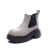 小牛皮头层牛皮复古短靴女秋冬新款马丁靴白色粗跟烟筒靴女