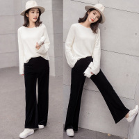 珂依舍2017秋装新款2017春夏新款休闲直筒阔腿拖地微喇甩腿裤女