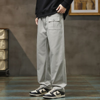 春夏透气工装裤男 浅灰抽绳直筒裤 大口袋装饰休闲长裤薄款男装潮