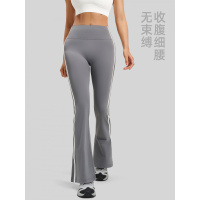 新款条纹喇叭裤跑步裸感弹力运动健身高腰提臀瑜伽长裤女