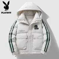 花花公子新款冬季羽绒开衫外套压花连帽不可脱卸羽绒服刺锈撞色男
