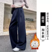 藏青运动裤子女春秋新款高腰垂感宽松显瘦直筒阔腿裤美式卫裤