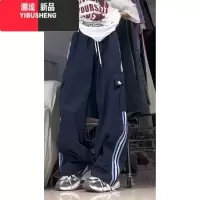 YIBUSHENG美式街头宽松显瘦休闲裤女季小众侧边条纹口袋长裤直筒阔腿裤子