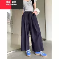 YIBUSHENG藏青色速干运动裤女薄款2024新款高腰束脚显瘦小个子休闲阔腿裤