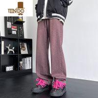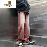 YANXU美式水洗做旧红色大码牛仔裤男宽松直筒oversize高街抽绳阔腿裤子