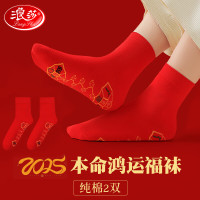 浪莎本命年红袜子女纯棉蛇年鸿运中筒袜结婚喜庆大红全棉2025属蛇 蛇年送福+蛇年如意 2双