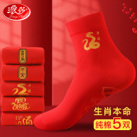浪莎红袜子男本命年纯棉鸿运袜子中筒2025蛇年大红喜庆全棉脚踩七星袜 红袜组合二图案详见主图 5双 均码(礼品袋装)