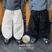 男童工装裤秋冬款加绒裤子新款冬装加厚大童街舞裤儿童运动裤