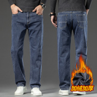 高端加绒加厚牛仔裤男士直筒宽松裤子新款秋冬款保暖休闲男裤