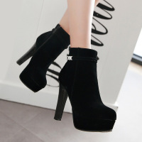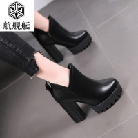 欧美防水台粗跟高跟鞋女2017秋冬新款短靴厚底圆头马丁靴及踝靴