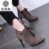 欧美尖头马丁靴女冬2017新款短靴细跟防水台高跟鞋时尚气质女踝靴