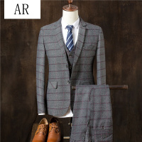 AR2017秋季西服套装男士三件套格子西装上班商务绅士男装西服套装