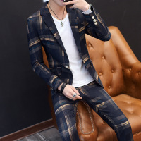 青年秋季格子西服套装男士韩版修身潮流小西装两件套商务正装礼服