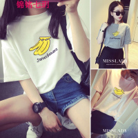 锦铭七玥2018新款短袖T恤香蕉水果图案宽松圆领上衣色打底衫学生风女装