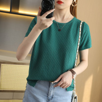 针织衫短袖女薄款镂空外穿圆领宽松T恤2026夏季新款棉线打底衫女