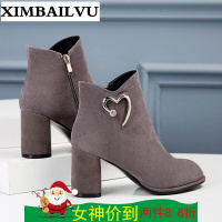 新款短靴女2017秋冬粗跟短筒女靴高跟马丁靴低筒靴单靴女