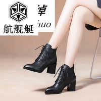 品牌女鞋牛皮高跟短靴女防水台女靴子细跟真皮及裸靴绒里靴低筒靴2017秋冬新款马丁靴