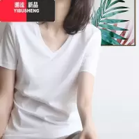 YIBUSHENG白色v领正肩短袖t恤女装季2024新款宽松内搭打底衫体恤百搭上衣