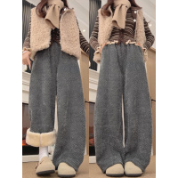 雪尼尔裤子女新款秋冬加绒加厚保暖棉裤羊羔绒阔腿镰刀裤_78_109
