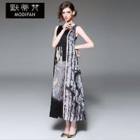 默蒂梵2017春夏新款女装欧美桑蚕丝印花连衣裙无袖长裙图片色