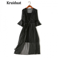 Kruidvat2017夏季新款时尚波点外披喇叭袖连衣裙中长裙黑色