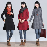 薇侣2017秋冬新款中国风连衣裙女长袖立领显瘦中长裙子