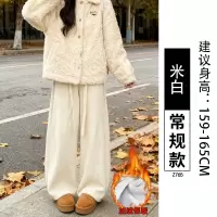 白色加绒阔腿裤女秋冬季新款窄版直筒垂坠感软糯羊羔绒糯米裤