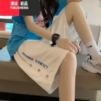 YIBUSHENG白色休闲运动阔腿短裤女季薄款辣妹大码宽松五分裤子高街ins潮