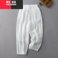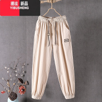 YIBUSHENG~薄款苎麻哈伦裤女宽松休闲裤大码显瘦棉亚麻阔腿九分裤