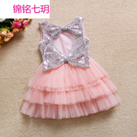 锦铭七玥一件代发外贸童装 夏装新款童裙欧美蝴蝶结亮片公主蛋糕裙