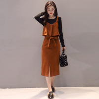 莞馨2017新款秋季时尚套装女韩版显瘦气质中长款吊带连衣裙两件套