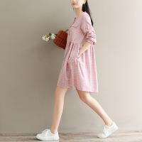 顺崇2018春季新款文艺复古条纹长袖宽松中长款衬衫连衣裙