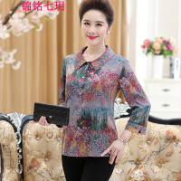 锦铭七玥2018新款中老人女装中袖春夏装真丝碎花加大码胖妈妈装衬衫