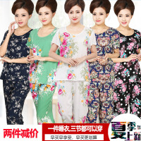 妈装夏装两件套胖老人短袖t恤夏季纯棉绵绸中老年女加肥睡衣套装