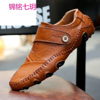 锦铭七玥新款真皮休闲男鞋时尚潮流韩版豆豆鞋男士大码皮鞋45 46 47