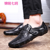 锦铭七玥韩版手工鳄鱼皮纹八爪鱼男士大码真皮豆豆鞋男休闲男皮鞋
