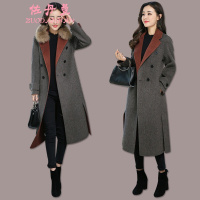 佐丹曼毛呢外套女中长款2017秋冬新款韩版过膝百搭冬天韩范毛领妮子大衣灰色