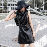 真皮皮裙女秋冬新款修身公主裙中长款绵羊皮大摆连衣裙