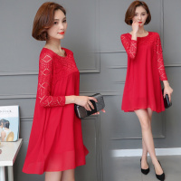 秋装胖mm中长款打底衫加肥加大码蕾丝宽松显瘦长袖雪纺连衣裙