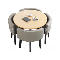臻远 ZY4100943 简约接待桌椅洽谈桌椅 一桌四椅 水曲圆桌灰色皮椅