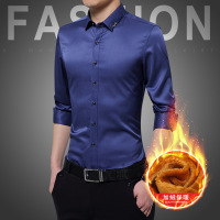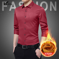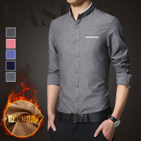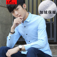 UYUK秋冬季保暖衬衫修身男士加绒加厚纯色商务免烫职业正装长袖衬衣