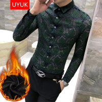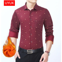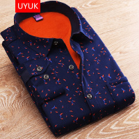 UYUK 秋冬新款男士加绒加厚保暖长袖衬衫中年印花秋冬男款大码衬衣衬衫