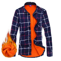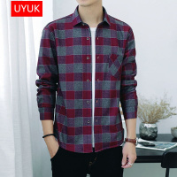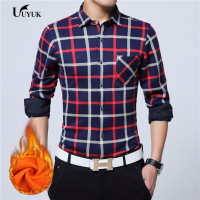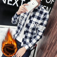 UYUK冬季加绒衬衫2017装新款保暖棉衬衫青年潮流男士长袖格子加绒加厚商务衬衣